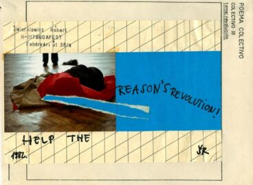 The following week, the porters charged with clearing out the gallery space removed the work and disposed of it in the bowels of the university. A few days later, one of the gallery staff members came across it, weather-beaten and vandalized, resting unobtrusively against a skip. There, the logic of its insistent ephemerality, of its belonging to a space other than the gallery, was more apparent than ever, even so many years after its original inception. Just as the Poema Colectivo is redeployed here on post with a renewed significance, Ehrenberg’s work also spoke once again to a new moment. Mail art and its archives continue to provoke, to make us consider and reconsider the politics of art and the potential for collective action. This performative aspect of mail art confers a continually evolving meaning, hinting at a journey that is as much temporal as it is geographic.