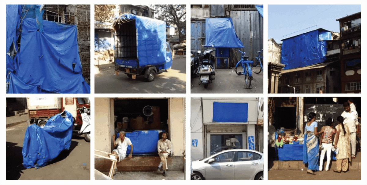Figure 5a. Sameer Kulavoor. Photographs depicting the many uses of blue tarpaulin or tadpatri