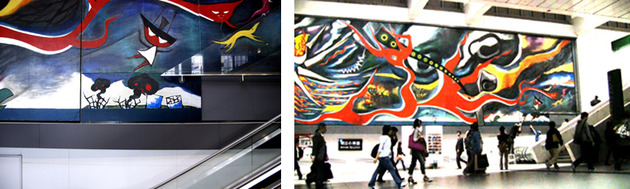A guerrilla-style installation in which a panel depicting the Fukushima nuclear disaster was added to Myth of Tomorrow, the existing mural by Okamoto Taro in Shibuya station. On a sheet of paper attached to a PVC panel, the image of rising black smoke in a skull shape was painted in the same style as the mural and appeared to be an integral part of it. News of the added panel spread via the Internet posts of passersby. Initially the new addition was regarded as an anonymous act and triggered controversy. At the REAL TIMES exhibition, it was revealed as the work of Chim↑Pom.