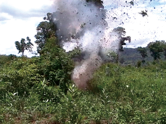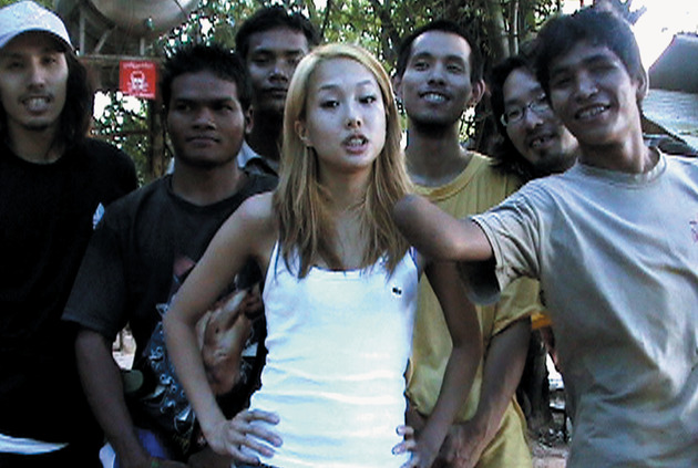 . 2007. Video (color, sound). © Chim↑Pom. Courtesy MUJIN-TO Production In 2007, Chim↑Pom headed for Cambodia to realize the dream of Ellie, who feels strong sympathy for celebrities: “I wanna do a charity in land mine fields like Princess Diana.” During their stay of a month or so, Chim↑Pom triggered land mine explosions with seven of their personal belongings, including Ellie’s luxury bag, an iPod, and a plaster figure of Ellie striking a celebrity pose. They were assisted by local residents who regularly clear land mines and care for children who have been injured by them. The project was planned as a charity benefit. Once they had returned to Japan from Cambodia, Chim↑Pom held an auction at P-HOUSE in Roppongi of the goods they had intentionally blown up. Proceeds from the sale would be donated to the local residents in Cambodia. The auctioneers were Ito Seiko and Ellie. Unlike an ordinary auction, where the prices go up, Chim↑Pom’s auction bids started at record prices paid for famous artworks and were gradually lowered until a bidder raised a hand. The prices were displayed in JPY, USD, and Cambodian Liel, and the numbers of prosthetic limbs that could be purchased for those amounts were projected on a screen at the front of the space. For example, when 12.6 billion JPY, the asking price for Damien Hirst’s For the Love of God, appeared as the starting price, the number of prosthetic limbs which that sum of money would buy (the number was greater than the total needed worldwide) appeared at the same time. The aim was to get all of the auction-goers to feel the shared responsibility and embarrassment of driving down the price of art and diminishing the number of prosthetic limbs that their money would buy. The auction raised a total of 2.1 million JPY, leaving 1.05 million JPY for Chim↑Pom, who visited Cambodia again in 2008. Although the situation in Cambodia had changed in the half a year since their initial visit, all of the money was given to those Cambodians who seemed to need it most.