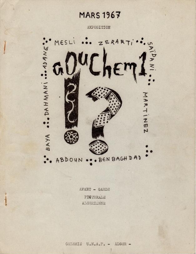 - 22Aouchem manifesto signed by Mesli, Adane, Saïdani, Martinez, Baya, Ben Baghdad, Zerarti, Dahmani, and Abdoun in Algiers on April 1, 1967. Archives Denis Martinez