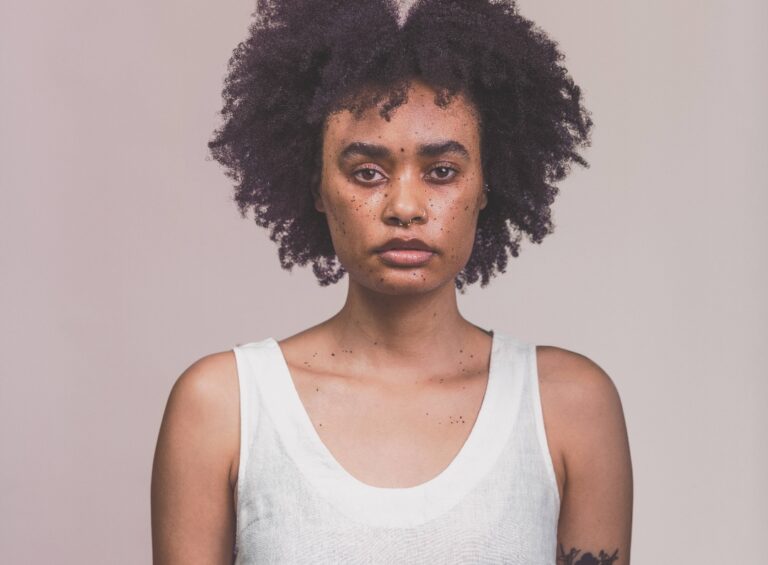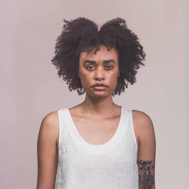 Confronting the prejudice inherent in photography and archival traditions, Goliath disrupts their extractive and classificatory logics to produce portraits in her own way. Unlike the fixed, monochromatic background of administrative photography, the tonal shifts in the series’ backdropsfrom earth tones to pink and purple—suggest movement and improvisation (fig. 2–4). Given South Africa’s enduring systems of racial-gender violence, these colors gesture to hope, possibility, and renewal within a landscape marked by brutality.