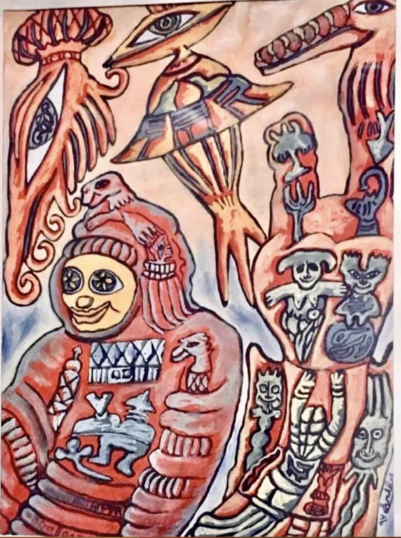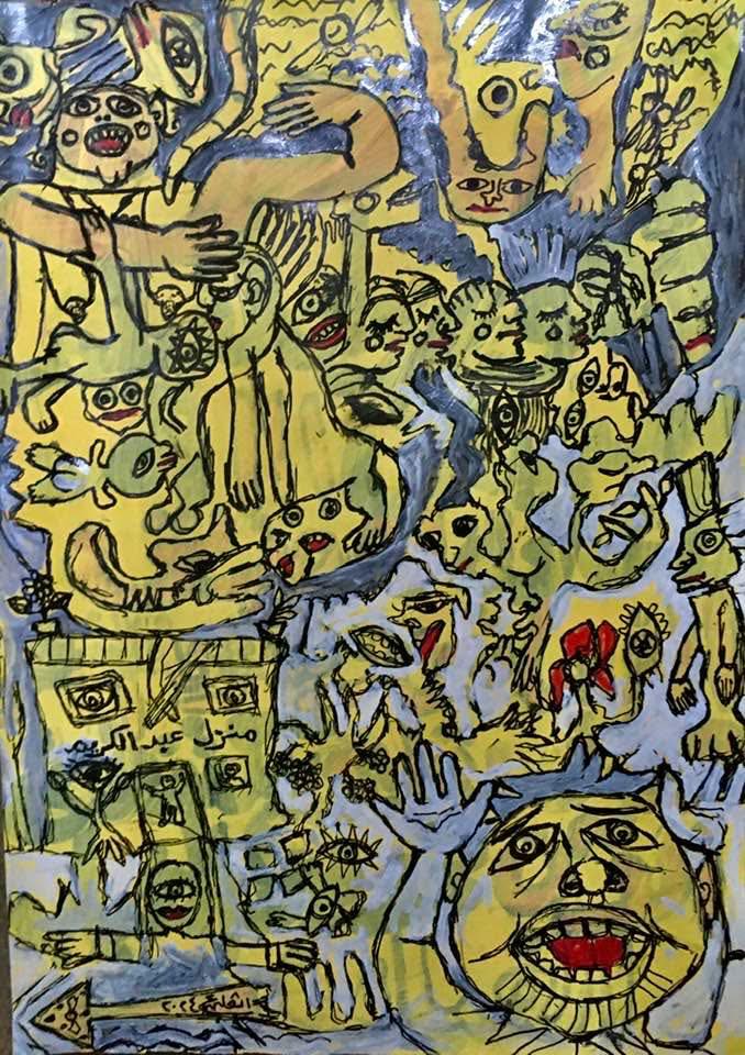 Figure 3. Evelyn Ashamallah. Journey into Space. 1997. Acrylic on paper, 13 3/4 × 9 13/16″ (35 × 25 cm). Image courtesy of Evelyn Ashamallah