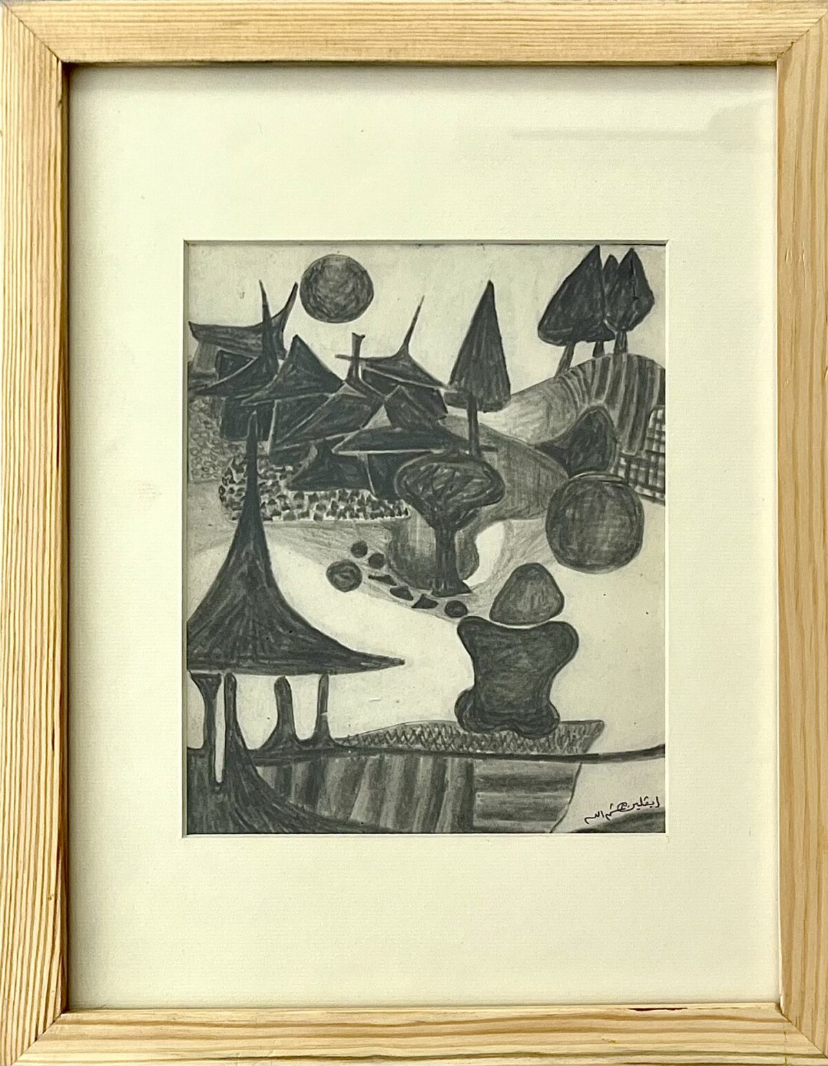 Figure 4. Evelyn Ashamallah. Landscape in Algeria. 1980. Pencil on paper, 7 7/16 × 5 7/8″ (19 × 15 cm). Courtesy of Azad Gallery and Evelyn Ashamallah